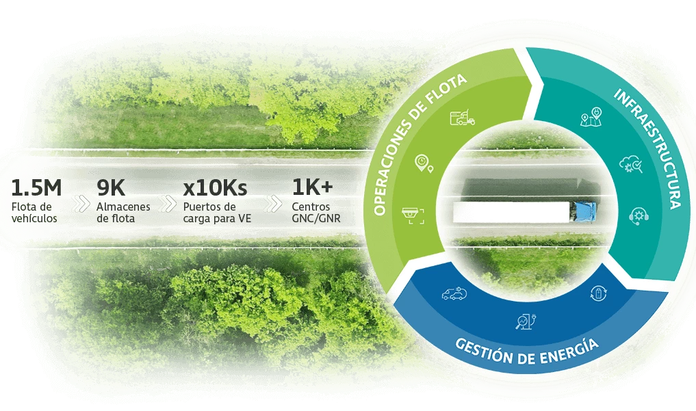 Entendemos los retos a los que te enfrentas con la transición energética y la importancia de tomar las decisiones correctas. Nuestro enfoque se ha diseñado para ayudarte hoy, mañana y en el futuro, con soluciones que abarcan las operaciones de flota, la gestión de la energía y las infraestructuras.